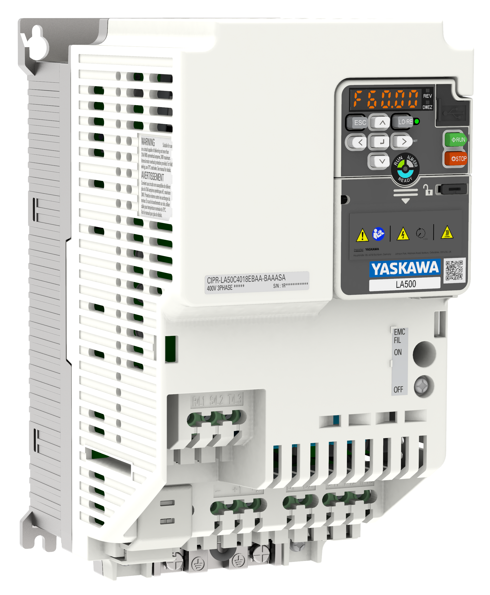 LA500 drives can be programmed and operated with an external high-resolution graphical keypad. Support for 9 languages, a Setup Wizard, and the intuitive full text menu structure simplify drive setup and save valuable time.